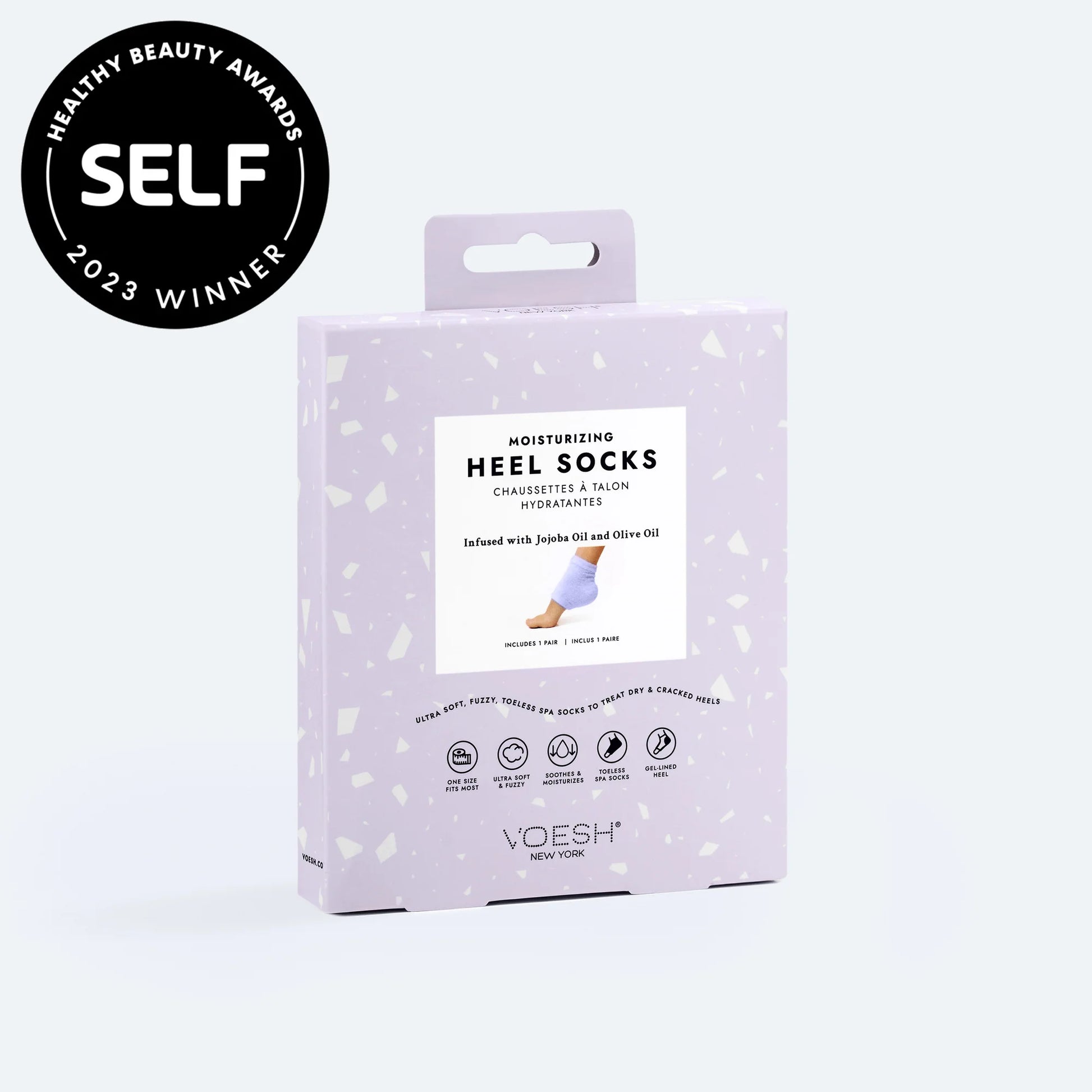 Fall head over heels for these Moisturizing Heel Socks! The fuzzy, ultra-soft socks feature a gel lining infused with jojoba oil and olive oil to intensely moisturize, nourish, and repair dry heels in just 30 minutes. Washable and reusable, the toeless socks can be used up to 50 times and are activated by body heat.
